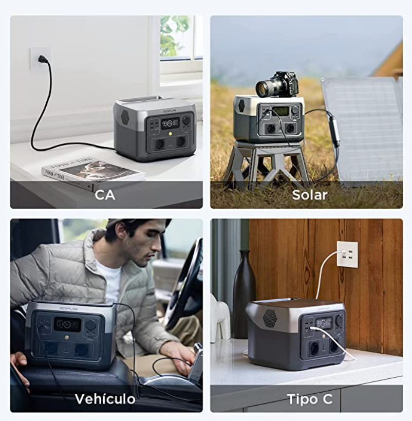 La Estación de energía portátil EF ECOFLOW RIVER 2 MAX se puede cargar de varias maneras, incluyendo la carga solar, la carga de la red eléctrica y la carga de un coche. La carga solar es especialmente útil en actividades al aire libre, mientras que la carga de la red eléctrica y de un coche son opciones convenientes para uso en el hogar o en viajes en carretera.